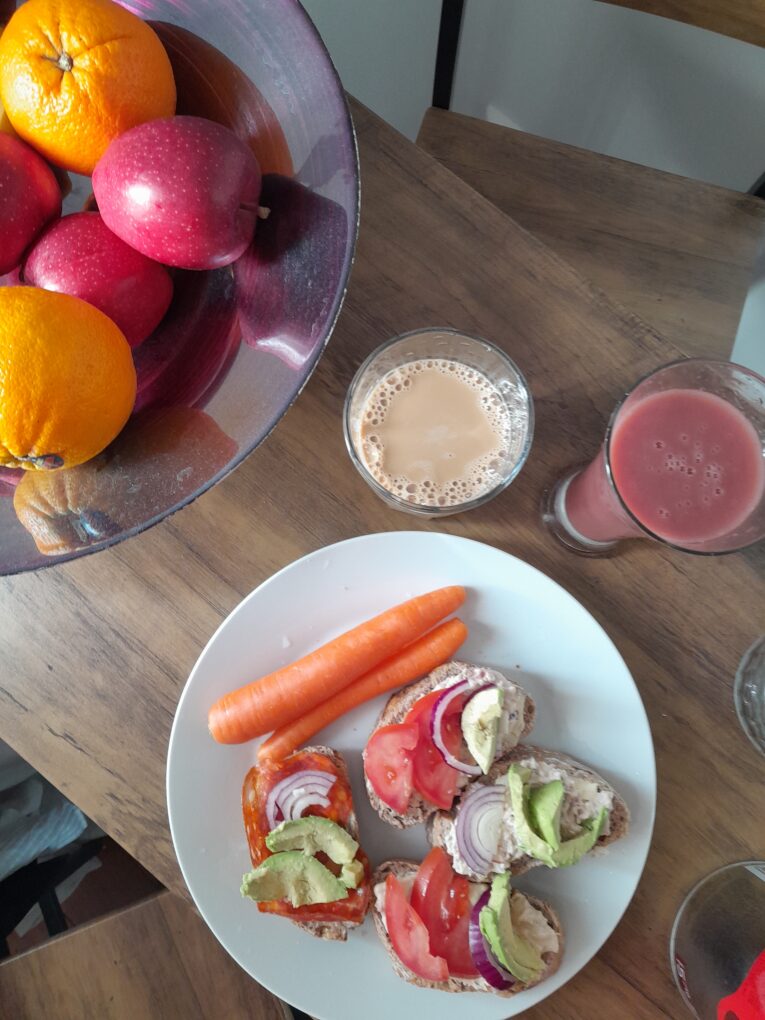 I’ve acquired myself a smoothie mixer and bought vegetables, spinace, fruits, shots and juices. I also add in EAA into the smoothies before workout.