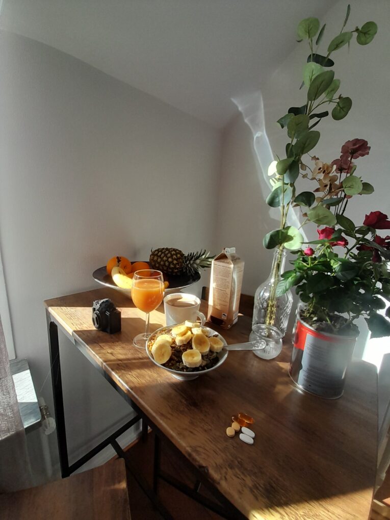 Starting the morning well, with enthusiasm, positive thinking, an enjoyable and healthy breakfast and some life quality music.